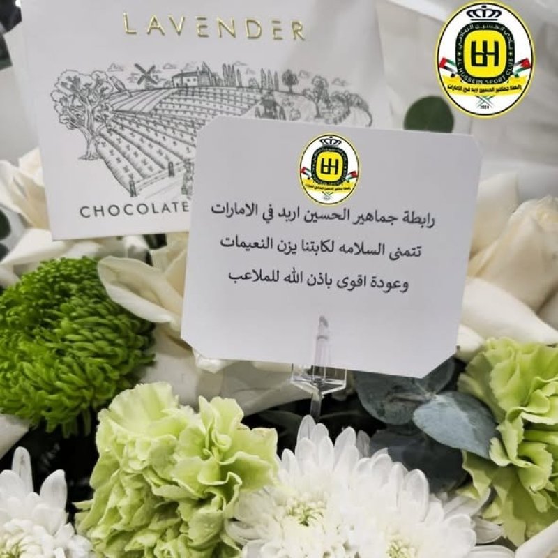 كما أرسلت الرابطة باقة ورد أيضا لنجم منتخبنا الوطني، يزن النعيمات، الذي غادر المستشفى بعد إجراء العملية الجراحية إثر تعرضه لقطع في الرباط الصليبي خلال البطولة.